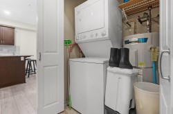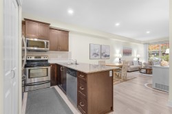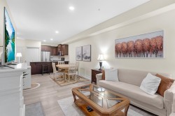 Revisit the West on the Village Walk by Wallmark! This beautiful and well-maintained 2 bed, 2 bath ground-floor home includes 2 parking stalls and 2 storage lockers. Enjoy a functional layout with 9-ft ceilings, updated flooring, and a spacious patio with direct street access. The kitchen features granite countertops, shaker cabinets, stainless steel appliances, and a breakfast counter. Freshly painted with upgraded bathrooms, this move-in ready home is perfect for pet lovers and those who value a walkable, active lifestyle close to shops, cafes, and all conveniences. A must-see! OPEN HOUSE on Dec 13 Saturday 2-4pm!