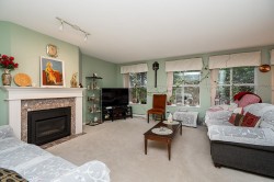 A rare find, fit the furniture from your family home into this unique and extremely well laid out 2 bedroom condo. Being a corner unit this home has lots of windows that look out onto a private garden paradise. Step out of your home onto a private patio with east and south exposure. This home has been lovingly cared for with updates including granite counter tops newer Stainless Steel Appliances, newer gas fireplace and new hot water tank A condo that feels more like being in house than condo. 2 parking stalls and storage locker included. OPEN HOUSE SAT JAN 31,2026 2-4 PM