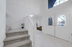 Welcome to this charming home in the desirable Panorama neighbourhood, where an expansive entry sets the tone with an immediate sense of space and comfort. The main floor features a traditional layout with separate living and dining areas, a spacious family room, and a kitchen with patio door access to the backyard. Upstairs offers four generous bedrooms, including a king-size primary with ensuite, walk-in closet, and an impressive 22-ft wide deck. The home also includes a 2-bedroom suite with a separate entry, ideal as a mortgage helper. Conveniently located near Northridge Elementary & Panorama Secondary, with quick access to King George Blvd & Hwy 10. Updates include fresh paint, upgraded electrical fixtures, and backyard landscaping.
