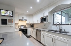 Beautifully updated 4-bed home in desirable Bear Creek Green Timbers! 1,700+ sq ft on a 6,081 sq ft lot, steps to Bear Creek Park and half a block to elementary & pre-school—perfect for families. Fully renovated interior featuring open-concept new kitchen & new bathroom, updated flooring (tile, laminate & carpet), pot lights, ceiling fans, baseboards, doors, closet organizers, paint, stainless stair rail, blinds/drapes, CCTV & security system. Appliances & hot water tank (2020). 1-bed basement suite rented at $1,300 + 40% utilities. Exterior renos (2024): new fence, front & back balconies with metal railings & awnings, gutters, fascia, paint & sensor lighting. Quiet street with ample parking—move-in ready!