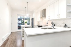 Welcome to beautiful Panorama West Coast Living! This stunning townhouse offers 3 bedrooms plus a den (or 4 bedrooms) and 4 bathrooms, thoughtfully designed for comfort and style. The chic, all-white kitchen features soft-closing cabinets, quartz countertops, and modern finishes. Bright and sun-filled, the home boasts two balconies and backs onto a tranquil greenbelt, providing privacy and fresh air. Recent upgrades include new carpeting on the stairs and new blinds on the main floor. The lower-level den/ bedroom with a full bathroom is currently rented, making it an excellent mortgage helper.