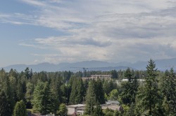 Large 1 bed, 2 bath condo with beautiful views from the 15th floor! Similar size to 2 bed units. Spacious living room with gas fireplace & a walk out deck to a north-west look of city & mountains. Dining room could also be a great place for a desk/study & the kitchen is positioned near the centre of the unit. With strata approval, a small renovation would create a nice open concept. Good size bedroom with ensuite & walk through closet. 2 outdoor pools, saunas, gym, hot tubs, & tennis courts are all great benefits to have as part of ownership at this project. 2 pets allowed & rentals welcome. Right across the street from Green Timbers Reserve, close to shopping, trails, & transit. Come for a showing to see how great it is here at The Stanley.