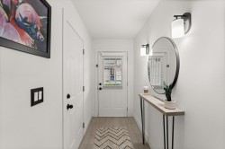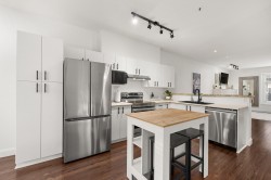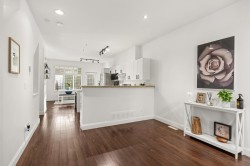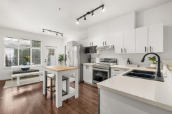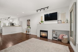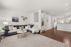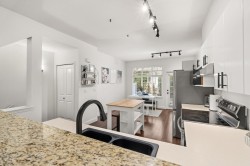 Beautifully redone townhome in a great part of Clayton! This 3 bedroom townhome shows incredibly well and offers a wide open plan, nice walk out yard off your kitchen and eating area as well as an oversized living area with extra space for large couch/sectional. Updates to kitchen, newer stainless appliances and fixtures throughout, new carpet upstairs and freshly painted throughout. Primary bed with renovations to ensuite, 2 good size bedrooms share the additional bath. Forced air heat, Double tandem garage with plenty of storage space and just steps to high school, shopping, new Clayton park and future SkyTrain.