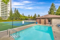 Welcome to The Stanley! This spacious 1,160 sq ft 2 bed, 2 bath corner home sits high on the 17th floor with bright south-east exposure and sweeping city & park views. Smart layout with generous living/dining area, gas fireplace and covered balcony. Primary bedroom features a full ensuite and ample closet space. Well-run concrete building with resort-style amenities. Steps to transit, Guildford Mall & Green Timbers.