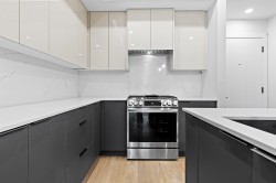 An exclusive opportunity to be the first to own at HALVO, a boutique new residence in South Surrey, bordering White Rock. This thoughtfully designed 1-bed + den showcases an entertainer's kitchen with a 1 generous island, quartz countertops, gas range, and stainless steel appliances. The bright, open layout is complemented by a spacious bedroom and a versatile den ideal for a home office, guest space, or small dining area. Enjoy panoramic rooftop amenities with stunning mountain views, BBQ area, putting green, clubhouse, fitness centre, and an outdoor children's play area. Includes 1 parking with rough-in Ev Charge and 1 storage. Just minutes to White Rock Beach, parks, shopping, hospital, and transit. A rare opportunity to secure the first resale in this highly desirable coastal community