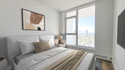 PRIME LOCATION! Welcome to Georgetown One by Anthem Properties! This North facing 1 bed and 1 bath condo comes with Unobstructed view. Not only does it offer a captivating mountain view, but it also ensures PRIVACY with its entrance strategically positioned away from the elevator. Experience contemporary finishes, stainless steel appliances, laminate flooring, and quartz countertops. Enjoy 30,000 sqft. of amenities featuring a gym, guest suite, co-work/study areas, yoga studio, outdoor theatre, lounge, green spaces, and a dog run area. Minutes away from SkyTrain, transit, Surrey Central Mall, SFU, KPU, future UBC Campus, T&T, City Hall, Library, restaurants, and more! Ideal for first -time buyers and investors. Also included One EV ready Parking and one locker. HURRY before it's too late!