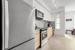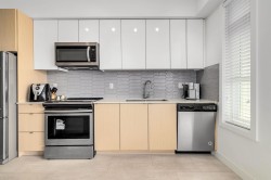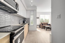 YALE BLOC 3 – Bright and modern 1 bed, 1 bath home with an efficient open layout and unobstructed mountain views from the living room and balcony. The sleek kitchen features Caesar stone quartz counters, bold marble tile backsplash, and S/S Whirlpool appliances. Enjoy plenty of natural light, in-suite laundry, plus 1 parking and 1 storage. Fantastic building amenities include a fitness centre, guest suite, and party room. Pets and rentals allowed with no restrictions—a great option for both first-time buyers and investors. Walking distance to Willowbrook Shopping Centre, Kwantlen University, Cactus Club, and close to the upcoming SkyTrain extension.