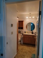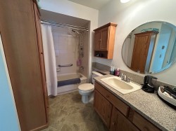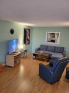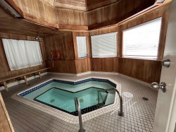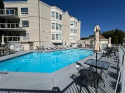 Top Floor Mountain View Bright Very spacious open plan one bed and den with new flooring, ensuite laundry, large main bed with semi ensuite full bathroom. Gated complex with common rec room, hot tub, outdoor pool and lots visitor parking. Central location close to shopping and transit. No rental or age restrictions. Pet allowed. **. Open House Saturday 12 - 2 pm **.No Signs ! ** Press Gate Code 5435 for access **