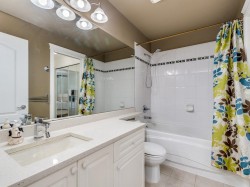 Central Location, Near freeway, Guildford town centre, library, rec centre. Well maintained shows well, Radiant hot water heating, spacious laundry/storage room locker. Sunny South facing. Tiled entrance, laminate floors. Stainless steel appliances and granite countertop in the kitchen. 2nd bedroom does not have a window but large enough to be used as a bedroom. Soaker tub, cheater ensuite. Secure gated community. Close to transit, Loads of visitor parking. Shows well!
