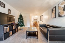 WELCOME TO PARKWOODS! This is a rare opportunity to own a spacious one-bedroom home in a well-managed strata, ideally located within walking distance to transit, SkyTrain, Surrey Central Mall, hospital, restaurants, and entertainment—while still enjoying a quiet, open-space neighbourhood. Cozy up by the gas fireplace with gas included in the strata fees. The home features an oversized living room and a large east-facing balcony, plus a new washer/dryer set, updated dining chandelier, and a newer fridge. Pet-friendly (2 cats or 1 dog allowed) and rental-friendly. Comes with 1 parking stall and 1 storage locker. Amenities include a pool table, gym, and sauna!