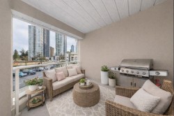 Welcome to Parkview Court, centrally located in Surrey Central. This spacious 2-bedroom home features a large primary bedroom with a walk-in closet and is move-in ready. Recently updated fresh paint throughout, and an updated kitchen enhance the modern feel of the home. Enjoy the large enclosed balcony year-round. Just minutes’ walk to SkyTrain Station, SFU, KPU, shops, banks, restaurants. Amenities include a well-equipped gym, sauna with showers in each change room, a common room for large gatherings, and bike storage. The unit comes with one storage locker and TWO large side-by-side parking stalls conveniently located near the elevator.