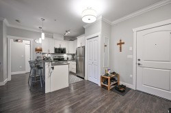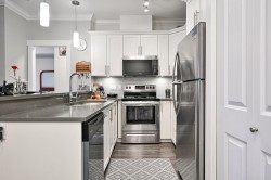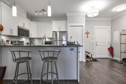 Just like a new unit, very spacious, clean, well laid out apartment with a south-facing balcony for your morning Coffee or BBQ., The building has nice, wide hallways. No one is above this unit, although it's on the 3rd floor, hence no noise from the top. Master Bedroom is huge with an ensuite 3-piece bath ( Walk-in-shower), Main bath has a deep soaker tub. 2 car parking, walking distance to Scott road for shopping/Transit to connect with Skytrain. South-facing Balcony from the living room overlooking the Garden area with lots of sunshine. Close to elementary school, on a no-through street.