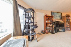 TOP FLOOR UNIT with COURTYARD VIEWS. This roomy one-bedroom condo easily fits a king-sized bed and house-sized furniture. Overlooking the courtyard and facing west, it gets great afternoon sun. Features include an outdoor balcony and in-suite laundry. One secure underground parking stall and gated visitor parking are included. Storage lockers are available for rent ($10/month), as is a second parking stall ($15/month). 2 small pets welcome (cats/dogs). Walk to parks and shopping on Scott Road. The North Surrey Sport and Ice complex is nearby. Enjoy an easy 7-minute commute to the Scott Road SkyTrain Station via the R6 RapidBus.