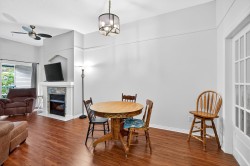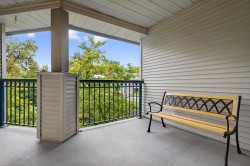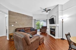 Penthouse! at The Fairmont. Get inside this fabulous Top Floor 2 bed unit situated far back from the Fraser Hwy and at the back of the building with 10 foot ceilings close to everything in beautiful Cloverdale/Langley. This unit offers an amazing floor plan with a spacious open living/dining area with a cozy gas fireplace and sliders leading to a covered balcony (SW) w beautiful courtyard and manicured gardens to enjoy year round. The bedrooms are located at opposite ends of the unit for extra privacy and the Primary has a nice walk in closet. The bright kitchen has enough room for 4 barstools at the breakfast bar and separate laundry/pantry area behind bifold doors. Steps to Langley's future skytrain, amazing restaurants, transit, shopping and the list goes on. Gas/Hot Water Included.