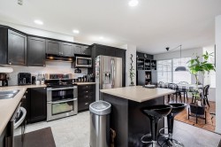 Welcome to Kentucky in West Cloverdale! This bright and spacious 2,314 sq ft townhome offers 3 bedrooms up, 1 down, and 2.5 bathrooms with convenient grade-level entry. Located in a sought-after gated complex with a deluxe clubhouse. Recent updates include new carpets, furnace, tankless hot water, A/C, roof, and fresh paint. The stylish kitchen features a large eating bar, opening to the dining and family room with a walkout to a gazebo in a large fenced backyard—perfect for kids and pets. Finished basement with a partially soundproof media room, games area, and 4th bedroom. Side-by-side double garage with visitor parking nearby. Walk to schools, transit, parks, and golf. Move-in ready—don’t miss it!