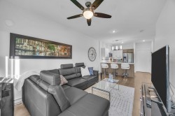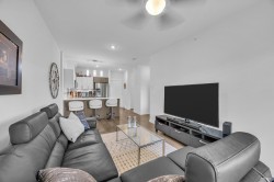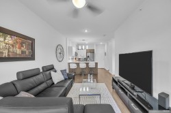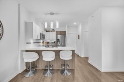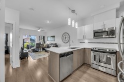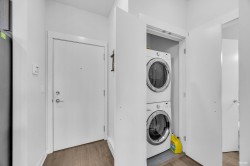 Investors and First Time Home Buyers, THIS IS THE HOME FOR YOU! This TOP FLOOR, 2015 condo features 9 foot ceilings, laminate flooring throughout and open concept living. Main living area and bedroom feel incredibly spacious. Bedroom can accommodate a king size bed + larger night stands and more. Kitchen offers tons of storage + lots of prep space. High-end stainless steel appliances, including a dedicated water line in the fridge. Also an upgraded and full size W/D. Centrally located, 1 block to bus stop & FIVE MINUTE WALK to the approved FUTURE SKYTRAIN STATION. 10 min walk to Woodland Elementary, Fresh St Market, Starbucks, restaurants, banks, & more.