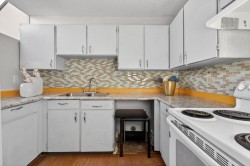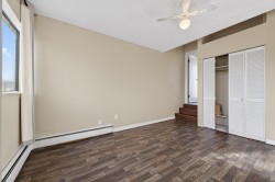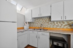 Great starter or investment home. Enjoy a superior, quiet location within the complex overlooking a large, grassy courtyard. The home offers a superb layout with great bones and only requires minor cosmetic updates—huge potential for future value, including possible upside from a complex wind-up. Conveniently located within easy walking distance to shopping, transit, and schools. all complemented by a bright open-concept floor plan. Skylights enhance the spacious living room with abundant natural light. Quick possession is available as the unit is currently vacant. Some photos are virtually staged