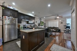 Welcome to Guildford Greens! This bright and spacious 4-bedroom corner townhouse offers an excellent open-concept layout with abundant natural light, large windows, laminate flooring, and a cozy fireplace. The gourmet kitchen features a large island, granite countertops, stainless steel appliances, and ample cabinetry, with access to a private balcony—perfect for everyday living. Upstairs includes three generously sized bedrooms, while the lower level offers a versatile rec room used as a 4th bedroom. Additional highlights include in-suite laundry, a double side-by-side garage, and very low maintenance fees in a well-managed, kids-friendly complex. Pets allowed with restrictions and rentals are permitted. Centrally located close to schools, shopping, parks, transit & mall