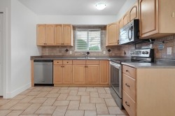 Welcome to Greenside Estates, this well maintained end unit rancher style townhouse is quietly located and just steps from the outdoor pool with direct access to Latimer Road Elementary School. Thoughtful updates include a newer kitchen with stainless steel appliances, updated backsplash, fresh paint, tile and laminate flooring, and a new gas fireplace in the family room. The expansive wraparound private yard offers a large sundeck ideal for summer entertaining & a generous grassy area for children to play. This is the perfect family home. Residents enjoy excellent amenities including an outdoor pool, basketball courts, clubhouse, and ample visitor parking. Ideally situated within easy walking distance to Willowbrook Mall & the future skytrain station!