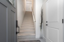 Welcome to this beautifully finished 3-bed, 3-bath home, ideally located in one of the most desirable areas of the complex. Built in 2019 & formerly the show home, this residence offers quality finishes & thoughtful design throughout. The main floor features bright 9-ft ceilings, spacious open-concept living area w/ gas fireplace & feature wall, & stunning kitchen w/ large island & generous dining space - perfect for entertaining. Upstairs, the primary bedroom boasts vaulted ceilings, complemented by 2 additional well-sized bedrooms. Enjoy year-round comfort w/ central air conditioning. Additional highlights include a large tandem garage w/ epoxy flooring, spacious balcony ideal for barbecuing, & fenced yard for added outdoor enjoyment. A move-in ready home in an exceptional location.