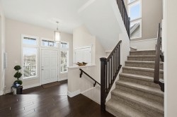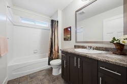 Stunning curb appeal, meticulously kept, with beautiful landscaping! Also low maintenance with artificial turf in the front, & the garden lighting in the evenings adds a wow factor. The wrap around deck is accessed off of multiple rooms! Main floor has dining rm/flex space leading to the open plan with spacious living rm & kitchen. Lots of cabinetry, S/S appliances pantry & convenient laundry on main! Up includes 3 well sized bdrms & a flex space that could be made into a 4th bdrm. Primary with vaulted ceiling, walk in closet & 5 pc ensuite. Down offers a rec rm, another bdrm, storage & new carpet. Enjoy the large patio & your private yard with no grass to cut! Hot water tank 2 years old, & bonus A/C for the hot summers! Call today to view this great home in a fantastic neighbourhood!