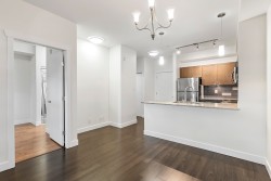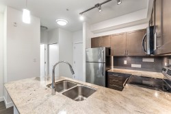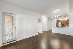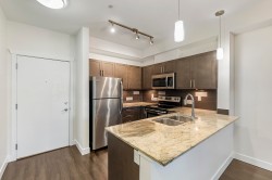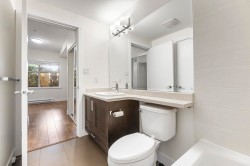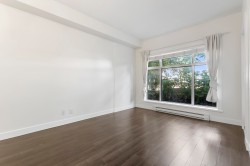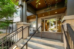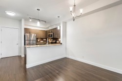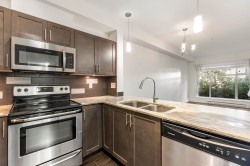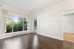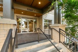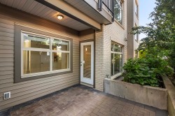 The Brookland - Only 4-minute walk to Gateway SkyTrain Station, Shoppers Drug Mart, & Nesters Market, this well-maintained 1 BDRM/1 BATH GROUND LEVEL condo offers both convenience & comfort. Built in 2011. This 595 SQ.FT FEAT. a functional open-concept layout w/ 9’ ceilings & updated laminate flooring in the bedroom. The kitchen is equipped with maple cabinetry, granite countertops, a marble-accented tile backsplash, and quality appliances. Freshly painted throughout. Step outside to your spacious and private patio—perfect for relaxing or entertaining. Enjoy access to building amenities - lounge & fitness room. 1 secured parking stall. Located in the K.B. Woodward Elementary and Kwantlen Park Secondary catchment. Ideal for first-time buyers or investors. Don’t miss this opportunity!