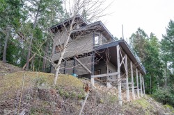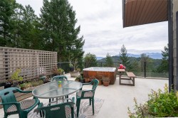 Spectacular views, southwestern exposure from every room. This 2bdr/2bath home gets sun all day & sits on 2.47 acres. Built in 2007 this home spared no expense: interior wood windows with metal exteriors for no maintenance, wood flooring, trims, cork kitchen flooring, large walkout decks with a hot tub to soak in the views from. Open plan main floor living area, guest bedroom with murphy bed has an ensuite full bathroom. The upstairs is a master suite with large office/den area, walk thru closet, & full ensuite bath and a walkout deck. New heat pump with heads on both floors makes heating and cooling easy. Large over height double garage below with room for another bedroom or rec room has a roughed in bathroom already. Good well with lots of cistern storage along with separate irrigation water storage. Telus fiber optic available for hi-speed internet for those who work from home. Easy maintenance yard makes the home easy to enjoy year around.