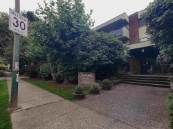 LANDMARK COURT on Quiet tree-lined E 7th Ave right off BOTH bustling COMMERCIAL DRIVE & VCC-Clark SKYTRAIN hubs! Just Like a TOWNHOME! North-East CORNER Garden level unit w/ independent street-side entry. Well beloved Family Home - Floorplan Features: Spacious 821 SF; 2 Bedrm 1 Bath, Expansive 200 SF Private fence & gated Patio to entertain, s/s kitchen appliance set, 1 Parking & Locker. Strata fee includes: hot-water heat b/b, h/w, gas fireplace. The best of Commercial Drive daily convenience : Steps to Grandview Elementary, Commercial-Broadway SKYTRAIN, B-line transit to UBC-Burnaby, bike lane, Trout Lake & Britannia community centre, highly praised foodie scene, boutique shops, Safeway, upcoming NEW St. Paul's Hospital; VanTech Secondary catchmt.*OPEN HOUSE Sunday FEBRUARY 15, 2 to 4pm*