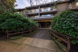 SPECTACULAR 280+sf PATIO from this FULLY RENOVATED loft style garden home at Landmark Belvedere right off Main Street. An entertainer's dream w/ striking architectural brick feature wall, engineered H/W floors, floor-to-ceiling windows & seamless indoor-outdoor flow. Open Chef's Kitchen w/ statement island range hood, S/S appliances, recessed lighting & sleek modern cabinetry. Spacious living & dining area opens directly to a private garden oasis. Large bedroom w/ deep mirrored closets. SPA-like bath w/ wood-toned vanity, white quartz counters & large format tile. FULLY RAINSCREENED solid building on a quiet tree-lined street steps to Main Street's best shops, restaurants, breweries & future Broadway Line. Pets OK. Parking & storage. A truly unique offering. Open Thurs 5-6PM & Sun 2-4PM.