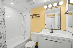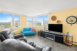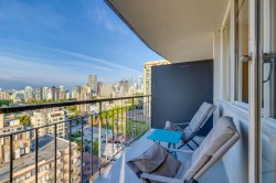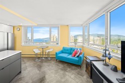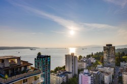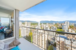 West of Denman! Bright 20th-floor corner suite with unobstructed ocean, mountain & city views from every window. NW exposure fills the home with natural light, ocean breezes & year-round sunsets. Extensive updates include a sleek high-gloss kitchen with quartz counters, new induction oven & S/S appliances. Be part of the unparalleled West End community, with beach, Stanley Park, pools, local shops & global eats on Denman Street at your doorstep. Well-managed concrete building with major upgrades complete, including roof, plumbing, pool & lobby, plus a rooftop lounge with 360° views. No Empty Homes Tax. Maint. fee includes taxes, heat, hot water & amenities. Lease prepaid to Dec 31, 2073.