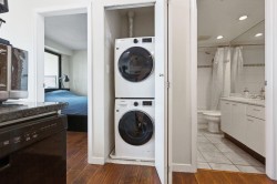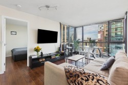 Desirable Unit in convenient location, with an affordable price offers Open city and partial harbor view, east facing two bedrooms and a solarium, two full bathrooms plus in suite storage. Efficient floor plan provides pleasant living area with an open kitchen concept, floor to ceiling windows, fair size bedrooms and large solarium for an office/ multipurpose room, a new laundry. Enjoy the in-suite storage/walking closet as well as the storage locker below, well equipped GYM, spacious and bright party room with pool tables, two guest suites, 24 concierge, in the popular high quality built "The Lions" in this coinvent location of Downtown, close to public transit, restaurant& Stanley park, all make living the unit enjoyable. Tenant, schedule a viewing with advance notice.