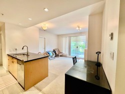 Stirling House - concrete high rise by Intracorp. This one bdrm garden level SOUTH-facing condo offers an open layout w/ 8'7 ceiling, in-suite laundry in unit storage room, gas cook top & fireplace. Walk out to the green space off your 11'6 x 5'12 patio -very quiet south-facing location. One secured parking spot. Pet and investor friendly. Be inspired and get active - close to all facilities UBC offerring.