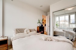 Welcome to STRATHCONA VILLAGE, where contemporary architecture meets effortless city living. Built in 2018, this Northeast facing corner unit features an open layout with breathtaking views of the North Shore Mountains and Vancouver Harbour from every room! The oversized patio creates a seamless indoor/outdoor living space perfect for entertaining. Enjoy exceptional amenities like 2 fully equipped gyms, a party room, meeting rooms, and beautifully landscaped rooftop terraces with gardens, BBQ's & play areas. Perfectly positioned just minutes from Downtown, Chinatown, and Commercial Drive, this home offers the perfect mix of comfort, style, and connectivity—ideal for first-time buyers or investors. Short-term rentals allowed!