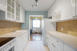 The best location in this fabulous building - top floor NW corner with a view! Bright & airy 941 sq ft, 2 bedrooms, one bath, gleaming hardwood floors, updated bathroom & kitchen, a great floorplan with bedrooms separated (perfect for a roommate!) - all in unbeatable South Granville location on the 10th Ave bike route, and 2 blocks from the new Broadway Subway station & the new City Market. This fabulous co-op allows one cat, but no dogs and no rentals, and has free laundry. Exceptionally well managed & maintained - this is a great opportunity to get into the market - with minimum 35% down payment. Common roof deck with BBQ too! No elevator. Ready for immediate occupancy. Don't miss this rare opportunity in a fabulous building in a great neighbourhood. Easy to show!