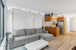 Sophisticated, sunlit studio in Vancouver’s iconic Genesis building—fully furnished with $63K in high-end upgrades. This unit includes a rare 94 sq. ft. private patio, secured parking, Italian Murphy bed, custom California Closets, $3K storage sofa, and modern tile flooring. South-facing layout lives like a 1-bedroom, with a reimagined flex space ideal for office or storage. Includes in-suite washer/dryer. Enjoy resort-style amenities: full gym, pool, sauna, rooftop terrace, concierge, guest suites, and more. Pet- and rental-friendly, just steps to the Seawall, Yaletown, top dining, and shops. Turnkey opportunity for stylish city living or a high-performing investment in one of downtown Vancouver’s most desirable locations.