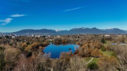 Beautiful side by side half duplex offering over 2500 sqft of thoughtfully designed living & space, including a 1-bedroom legal suite. Above level is 3 good sized bedrooms, primary bedroom with spa like ensuite and cathedral ceilings.. High end modern finishes, well-crafted built-ins, a chef-inspired kitchen featuring an oversized island and classic glass-front cabinetry, paired with premium Thermador appliances. In-floor radiant heat and A/C. Grand foyer with discrete powder room. Mountain views from both levels and in a quiet, family-friendly neighbourhood. Detached garage, rear parking pad & front parking. Lord Beaconsfield Elementary & Gladstone Secondary. Steps to Trout Lake and all the amenities it has to offer.