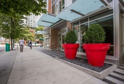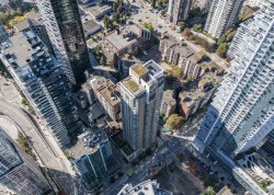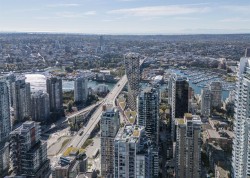 Trendy downtown living at SALT by Concert Properties! This bright SE-facing 2 bed + den corner unit offers stunning city skyline and water views. Thoughtfully designed layout with no wasted space, a sleek open-concept kitchen, spacious balcony, and one parking stall. Enjoy integrated European appliances, quartz counters, and modern finishes throughout. Building features a well-equipped gym, rooftop garden, party lounge & concierge. Walk to shops, seawall, dining, transit & more.