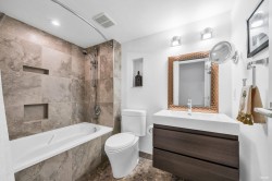 This Executive 3-Bedroom Luxury Townhome offers nearly 2,000 sq ft of living space, breathtaking city, mountain, and partial water views. Fully rainscreened, with a new roof and Trex decks completed in 2024. The home boasts many upgrades including a steam shower, jet tub, new Samsung range, quartz countertops, and modern LED lighting throughout. Enjoy the convenience of a private attached garage and 2 additional parking spots. Located in the Broadway Corridor, this property is ideal as a current home or a smart investment, with rental income potential of over $6,000/month and significant redevelopment opportunities.Walking distance to Granville Island, Sea Wall, VGH,cafes & restaurants. Act now to secure this rare offering!