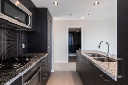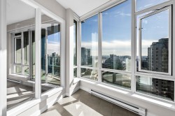 'Atelier' on Robson - one of DT Van's most convenient & desirably located buildings. This 1bed+solarium+den home offers an open concept layout w/ floor-to-ceiling windows, making for a commodious space w/ gorgeous views of DT, BC Place, Metrotown & through to Mount Baker. Offering a beautiful kitchen with granite countertops, s/s appliances with gas cooktop, dark cabinetry, a spacious breakfast bar and built-in wine rack. This well-run building offers great amenities such as a bike room, meeting room, party room, 24-hour concierge, fitness centre w/ yoga and spin studio, steam room and tranquil rooftop garden. One parking stall is included and just steps away from Robson Street eats, Rogers Arena, BC Place, Vancouver Library, IGA & more!Opens: Saturday, Feb 7th & Sunday, Feb 8th from 2-4pm
