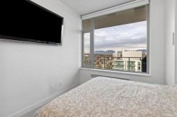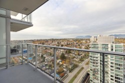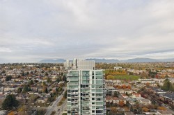 30th floor VIEWS. This bright 1 Bed & 1 den + additional office nook offers unobscured 180 degrees North-facing mountain views to wake up to. 531SF of well designed space, 9ft ceilings, floor-to-ceiling windows and efficient open layout are perfect for students or young professionals. Layout includes a dedicated work-from-home space, ideal for modern living. Enjoy premium finishes with Blomberg S/S appliances, Grohe faucet, passive heating/cooling system. Concrete Highrise MC2 by Intracorp. Yes 1 parking stall and 1 storage locker! Marine Drive Skytrain Station right below, T&T, banks, Cineplex, restaurants, and plentiful amenities! Skytrain to downtown in 15 mins. Catchment Churchill Secondary & JW Sexsmith school. Contact today for a private viewing!