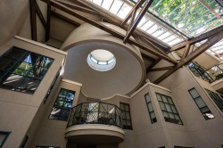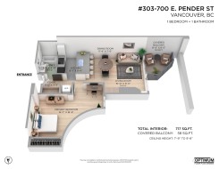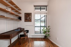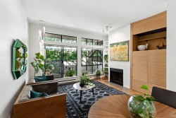 Penthouse living in a landmark, where light, volume, & character combine in a way modern condos simply can’t replicate. Fully renovated, 10’ ceilings, 4 skylights, full-span windows, & a rare sense of air & openness. Once Vancouver’s 1st synagogue, the building delivers heritage presence & the home, both cozy charm (wood fireplace!) & modern design - reclaimed flooring, Bocci lighting, sleek built-ins, spa bath. A huge bedroom allows for home office or flex/creative space, & the covered balcony is a treehouse retreat. Steps to MacLean Park, Community Centre, Railtown, & standouts like Kissa Tanto, Barbara, Finch’s & more . This is not a $/ft2 purchase, but a unicorn home in a unicorn building in neighbourhood where community thrives. In-suite W/D. Walk-up. 1 parking, 1 storage