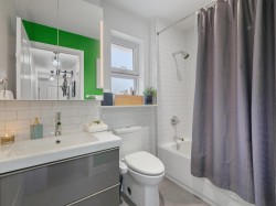 Welcome home to your light-filled East Van oasis! The living area of this 1,016 sqft south-west corner unit has large windows out to a quiet, tree lined street plus a cozy gas fireplace and the dining room has functional bench seating + access to the south facing balcony – perfect for summer BBQ’s. 2 spacious bedrooms & an upstairs loft (ideal for a home office, third bedroom, or bonus rec room) + updated kitchen, renovated bathroom & in-suite laundry complete the home. Includes two parking, full size storage locker & bike room in this rarely available, well-maintained East Van boutique building. Bosa Foods is around the corner, a short walk to Commercial Drive, great shops & restaurants! Pets Allowed too! Sneak Peek Thurs Feb 19, 5-6:30pm and Open House Sat Feb 21 2-4pm & Sun Feb 22 1-3pm