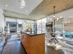 Outstanding investment opportunity! Rarely available loft-style corner home in the sought-after Left Bank building. Offering 2 bedrooms and 1 bathroom, this bright and airy residence showcases polished concrete floors, overheight ceilings, and an open-concept layout that extends seamlessly to your private covered balcony. Located directly across from the future St. Paul’s Hospital, this property is ideally positioned for long-term growth. Just steps to the SkyTrain (Science World Station), Seawall, parks, restaurants, and sporting events. Well-managed building is pet friendly (2 pets allowed). Located on the quietest corner in the building, away from the viaduct and Main Street. 1 secured parking. An exceptional opportunity for both homeowners and investors.