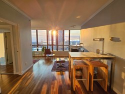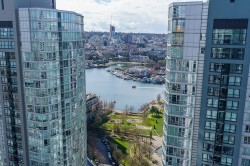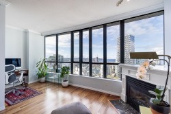 This one-of-a-kind Unit 3202 offers stunning sunset views from its SW corner perch overlooking False Creek & English Bay. This 2 bed, 2 bath + den + office sub-penthouse boasts large windows in every room, breathtaking views throughout. Kitchen features granite counters and S/S appliances. 9’ ceilings, hardwood floors and gas fireplace. Only 2 units on level 32 added privacy! Amenities include concierge, party room, indoor/outdoor pool, Jacuzzi, sauna, gym, guest suite, an elegant lobby with passenger drop-off & and an outdoor courtyard with beach volleyball court. Pets & rentals allowed. Prime location—steps to SkyTrain, dining in Yaletown, grocery shopping & the seawall. George Wainborn Park is one block away Bonus:* 2 parking 1 storage locker.