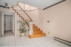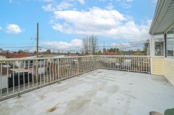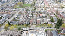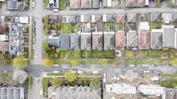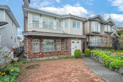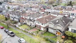Zoned RM-7AN that currently allows for 3 townhomes or triplex. Potential for 12 storeys with land assembly. Home is in great condition to rent and hold for revenue before an assembly occurs. Double door entrance with spiral staircase. Hardwood flooring on both levels & parquet flooring in 2 bedrooms on upper level. Peninsula kitchen has window sink & granite countertops and is open to the eating area & family room, large solarium connected to the huge sundeck, all facing South. Primary bedroom has walk-in closet & ensuite with newer raised sink. Jacuzzi tub in main bathroom. Home features hot water baseboard heating, built-in vacuum & hot water on demand. Lower level has separate entry & kitchen. Back lane access. 5 minute walk to Joycee-Collingwood Station.