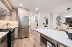 An affordable opportunity to own a brand new 2-bedroom home at Pender Mews, ideal for first-time buyers seeking convenience and long-term value in East Vancouver. This thoughtfully designed residence features luxury vinyl flooring, LED lighting, and a built-in TV stand with custom storage. The kitchen offers two-tone cabinetry, quartz countertops, tiled backsplash, oversized sink with garburator, and a full Samsung appliance package. Bedrooms include custom closet built-ins, while the primary ensuite features a tiled shower with custom glass enclosure. Additional highlights include a heat pump with A/C, EV-ready parking, and a private south-facing outdoor space with gas and electrical connections. Potential GST exemption for qualifying first-time buyers. Open House Sat & Sun, 31/1, 2-4pm.