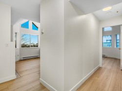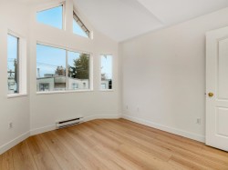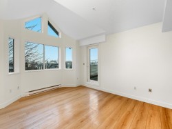TOP FLOOR, CORNER SUITE WITH A CITY VIEW! This well laid out two bedroom condo is a rare find. With spacious patio, vaulted ceilings, Cozy gas fireplace, brand new laminate and vinyl flooring throughout, new laundry pair, and fresh paint, it's move in ready, or add value with cosmetic kitchen and bathroom ideas. Very bright with loads of windows facing North and West, enjoy the view and great light all year long. The location is unbeatable - steps to Commercial Drive, The York, The Cultch and all that this desirable pocket of East Vancouver has to offer. Private end unit in a solid, well maintained building with a newer roof and proactive and friendly strata. Pet friendly strata includes two parking stalls, gym, sauna, and amenity room. Open House Sunday Feb 8th from 1-3pm.