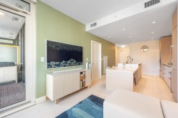 Welcome to this meticulously maintained 1 Bedroom + Den home at Avalon 3 by Wesgroup, located in the heart of River District. The spacious den functions perfectly as a home office and comfortably accommodates two full sized desks, ideal for today’s work from home lifestyle. Residents enjoy an impressive collection of amenities including an outdoor pool, hot tub, fitness centre, residents’ lounge, and more. One parking stall and one spacious storage locker are included. This well designed home offers the complete package in a vibrant, growing master planned waterfront community surrounded by parks, riverfront trails, and everyday conveniences such as restaurants, cafés, and grocery stores. Open House February 8th (Sunday) from 2-4 PM. Easy to show!