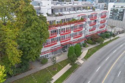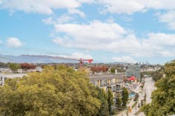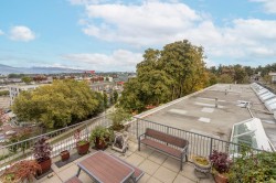 SUB -PENTHOUSE AT MAINSPACE WITH NO ONE ABOVE YOU !!!!, rare 696 sq ft loft style live/work gem in the heart of Mount Pleasant. This open concept unit features soaring 10’+ ceilings, HUGE SKYLIGHT, plus full height windows to PRIVATE CITY & MTN VIEWS, flexible layout perfect for creatives, professionals or investors. POLISHED CONCRETE FLOORS IN LIVING AREA, excellent built -ins, 1 parking is included and laundry is in-suite plus on each floor, THIS SOLID building is pet friendly plus VARIOUS parks are a short walk away. Exceptional walkability to Olympic Village, Main Street shops, Emily Carr, parks, and the upcoming Canada Line just blocks away. PANORAMIC VIEWS FROM COMMON AREA ROOFTOP DECK …. NICE !!! open house feb 1 st 1-3pm