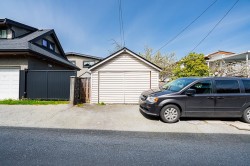33' x 105' (3,360 sq ft) lot is zoned R1-1, great location to build a front to back duplex, single family home with laneway/additional suites. 6 bedroom home, 1800 sf, 2 up, 2 on main, 2 down, 2 full bathrooms. 1 oversized single garage with lovely backyard and additional parking off lane. Owner would consider allowing builder/developers longer completion times. Owner may even consider leasing back if needed.